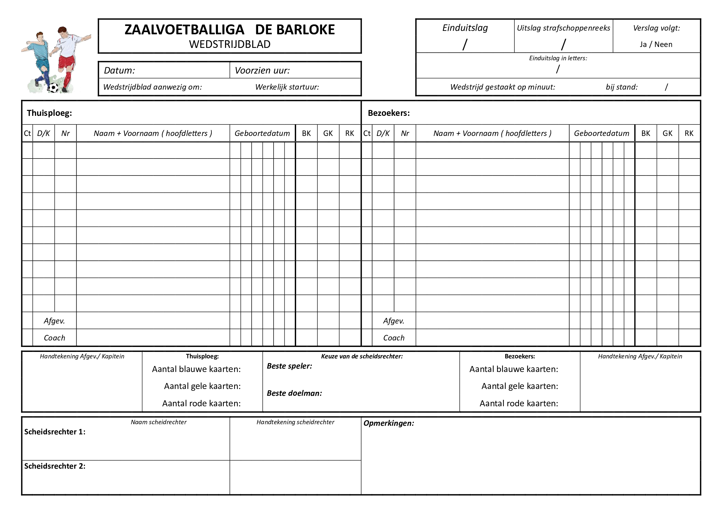 Bijkomend: kolom D/K voor aanduiden van Doelman en Kapitein.
