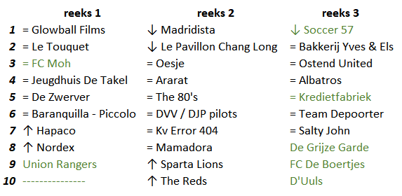 zie pagina Wedstrijden of klik op naam van uw ploeg.